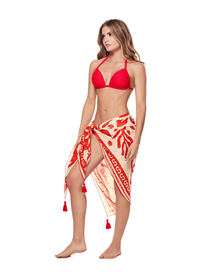 ¡Dale un toque de estilo a tus días de playa con nuestro encantador pareo cuadrado! Adornado con divertidos pompones, este versátil pareo se puede anudar como un elegante vestido o falda o desplegar como una cómoda manta de playa. Perfecto para lucir mientras radiante disfrutas del sol o te relajas junto al mar.